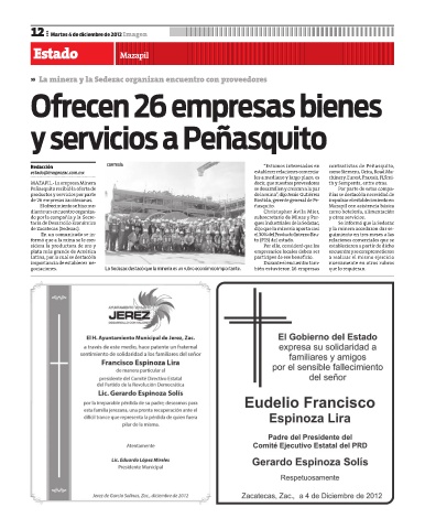 Page 12 - Imagen Zacatecas edición del 04 de Diciembre 2012