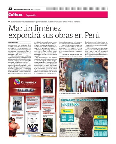 SOMBRERETE.- Este próximo 27 de di- en la que agregó un performance mi- Los Exilios del Femur se inaugura- y están en diversas colecciones públi-