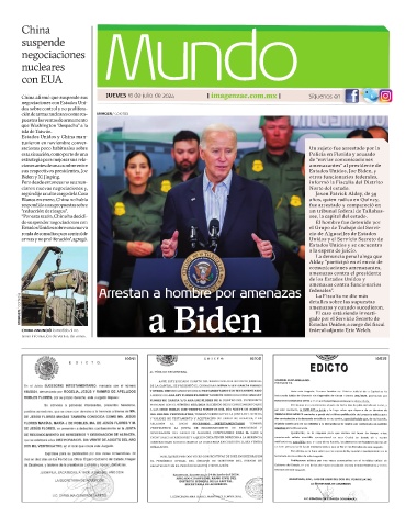 China afirmó que suspende sus JUEVES 18 de julio de 2024 | imagenzac.com.mx | Síguenos en